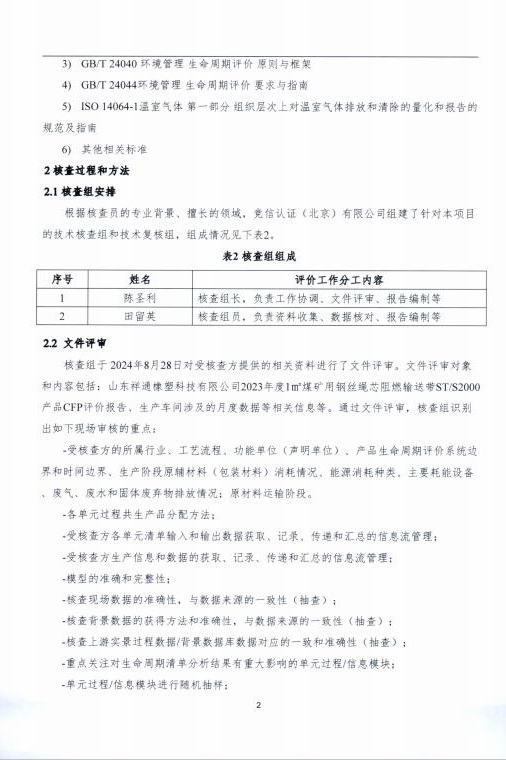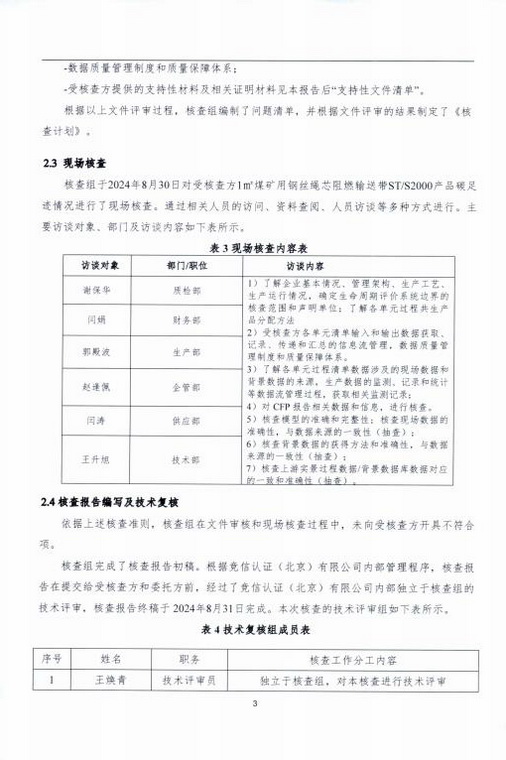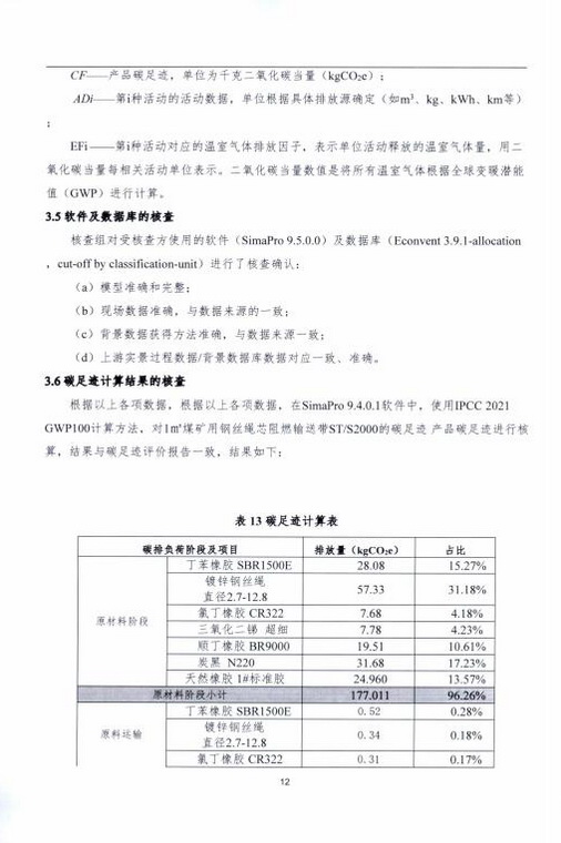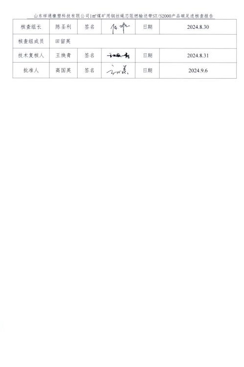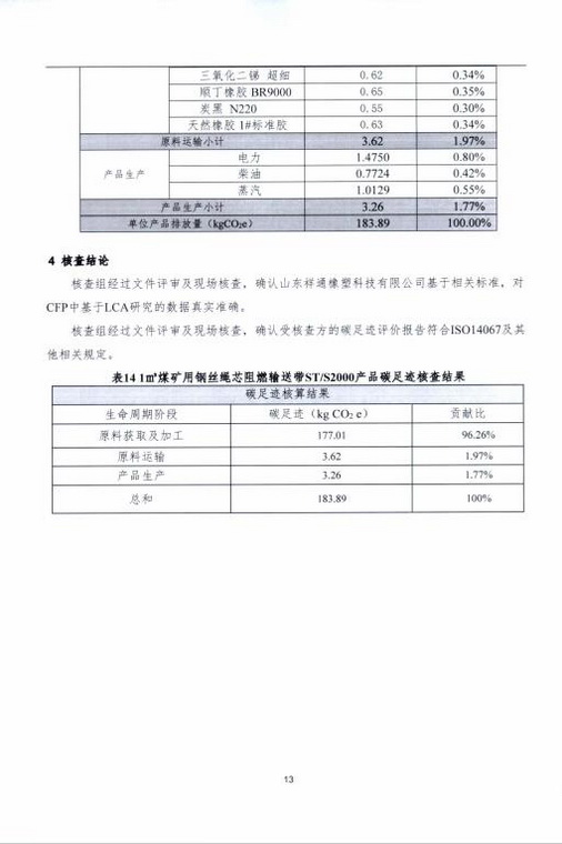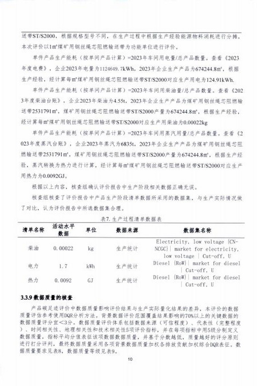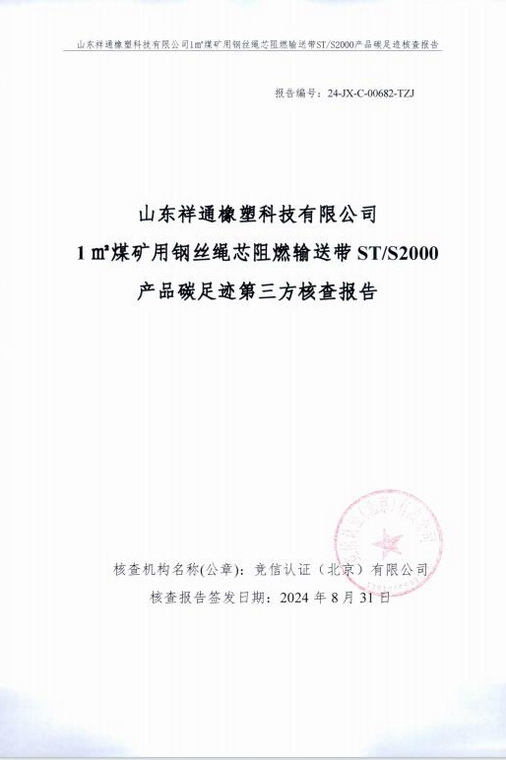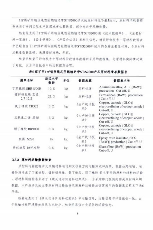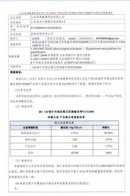 產(chǎn)品碳足跡第三方核查報告煤礦用鋼絲繩芯阻燃輸送帶 STS2000