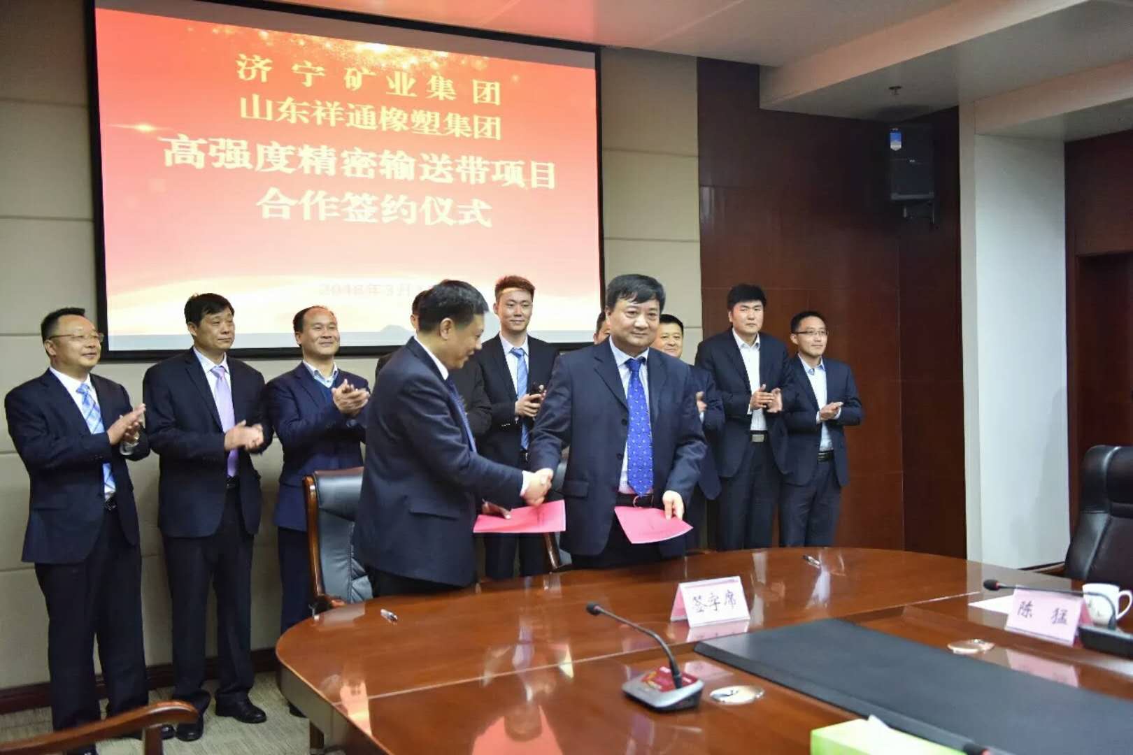 草木萌發(fā),春山可望。三月初的孔孟之鄉(xiāng)、運(yùn)河之都——濟(jì)寧,處處散發(fā)著濃濃的早春氣息。3月4日上午,由濟(jì)寧礦業(yè)集團(tuán)與山東祥通橡塑集團(tuán)聯(lián)合出資,且由濟(jì)寧礦業(yè)集團(tuán)控股組建的混合經(jīng)濟(jì)體山東濟(jì)礦祥通橡塑有限公司高強(qiáng)度精密輸送帶項(xiàng)目合作簽約儀式在濟(jì)礦集團(tuán)隆重舉行。濟(jì)寧市國資委副主任馬平,濟(jì)礦集團(tuán)總經(jīng)理張廣宇,山東祥通橡塑集團(tuán)董事長張建魯?shù)扔嘘P(guān)負(fù)責(zé)人出席了簽約儀式。儀式由濟(jì)礦集團(tuán)副總經(jīng)理魏忠勛主持。
