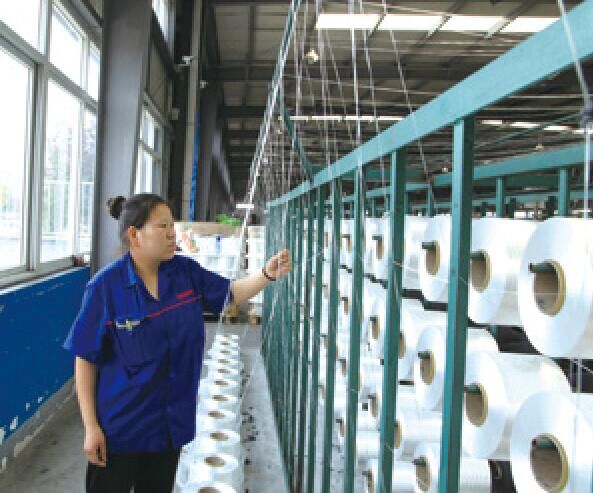 張聽說就如普通的月季花,她 2010 年進入祥通橡塑集團有限公司,一直在帶芯車間工作,2017 年被評為“優(yōu)秀員工”。在機器轟鳴下,筆者來到帶芯車間,她正認真核對絲的規(guī)格、型號是否異常,然后把商標剪下安置好。當問起獲得此榮譽的心得,她神情激動,用手擦了擦臉上細密的汗珠,面帶羞澀謙遜道 :“我不會說,只會做。”她對工作兢兢業(yè)業(yè)。當問起具體工作,她娓娓道來:這項工作需要勤巡查,嚴禁多股少股沒捻度。一天的工作先從打掃衛(wèi)生開始,地面必須掃得干干凈凈,機械擦得一塵不染。