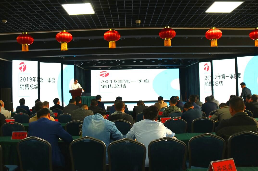 2019年4月7日上午9時,山東祥通橡塑銷售有限公司一季度銷售工作會議在集團祥通新雅多功能演播廳召開。會議對集團公司一季度銷售工作進行了認(rèn)真地總結(jié)和分析,并依據(jù)各地區(qū)市場一季度的客觀情況對銷售部、區(qū)域直營部、公司直營部二季度任務(wù)目標(biāo)進行了個別調(diào)整,為沖刺二季度全面完成上半年銷售任務(wù)和目標(biāo)進行了再研判和再部署。集團公司董事長張建魯、總經(jīng)理張振宇、副總經(jīng)理王冬、銷售總監(jiān)王長友和各銷售部、區(qū)域直營部經(jīng)理等相關(guān)部室及一線銷售人員約60多人出席了會議。