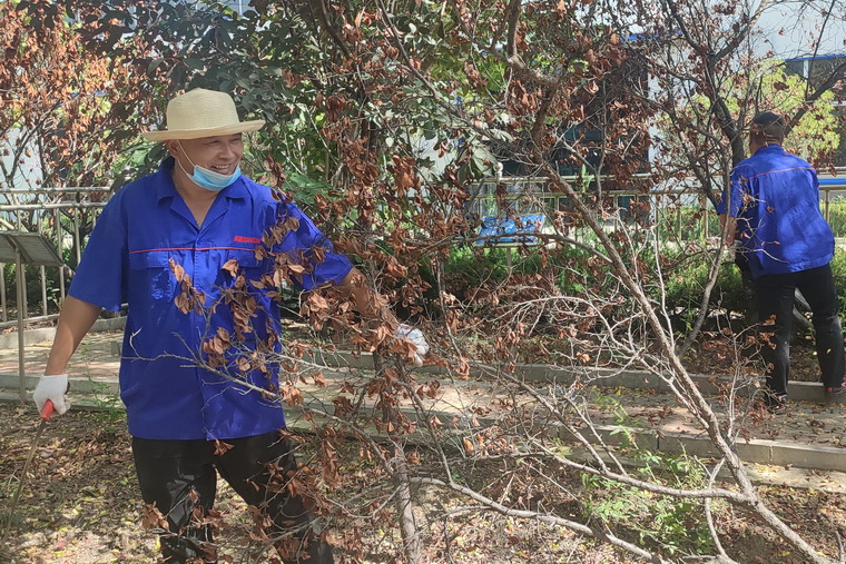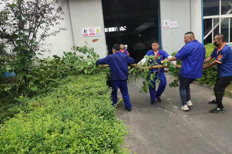 在勞動(dòng)中,員工們分工明確,有的手持電鋸把枯死的樹(shù)枝鋸掉,有的在樹(shù)下把鋸下的枯樹(shù)枝搬運(yùn)走,大家干的是熱火朝天,共同為廠區(qū)的綠化、公司的環(huán)境整潔作出貢獻(xiàn),整個(gè)廠區(qū)看起來(lái)不僅干凈而且整潔舒適。
