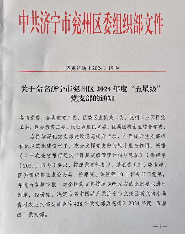 按照黨支部自評、基層黨(工)委考評,區(qū)委組織部征求公安局、檢察院、法院等10個相關部門意見,并進行復核審批,近日,山東祥通膠帶有限公司黨支部被中共濟寧市兗州區(qū)委組織部評為兗州區(qū)2024年度“五星級”黨支部。這一榮譽的獲得,不僅是對公司持續(xù)深化黨支部規(guī)范化、標準化建設和充分發(fā)揮黨支部戰(zhàn)斗堡壘作用的高度肯定,是對公司未來發(fā)展的鼓勵和鞭策。