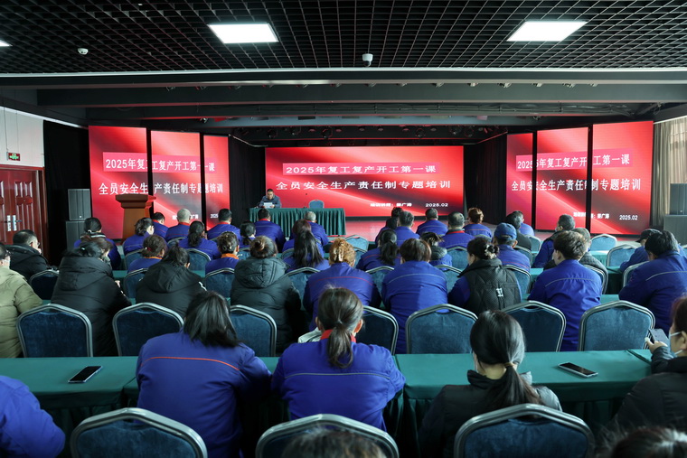 不負(fù)春光開好局,收心實(shí)干正當(dāng)時(shí)。大年初七開工第一天,為深入貫徹落實(shí)關(guān)于安全生產(chǎn)各項(xiàng)工作部署,強(qiáng)化安全生產(chǎn)主體責(zé)任落實(shí),促進(jìn)節(jié)后安全有序復(fù)工復(fù)產(chǎn)。24日上午,集團(tuán)公司2025年春節(jié)安全生產(chǎn)開工第一課培訓(xùn)會(huì)在研發(fā)樓六樓多功能會(huì)議室舉行。集團(tuán)公司領(lǐng)導(dǎo)班子成員和各部門、車間負(fù)責(zé)人及全體員工參加會(huì)議并共同觀看了安全警示教育片。會(huì)議由集團(tuán)公司總經(jīng)理助理兼企管部經(jīng)理趙逢佩主持。